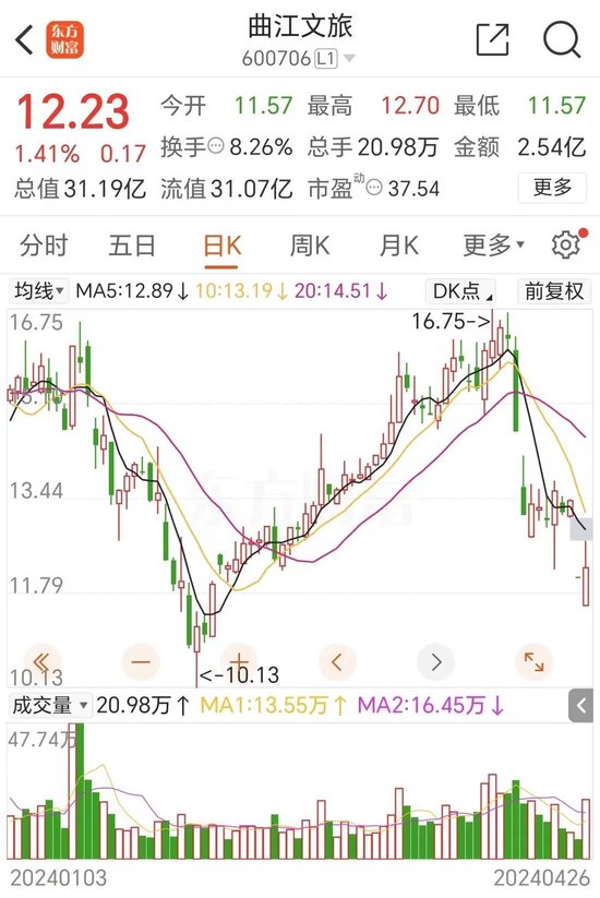 4月26日,曲江文旅股价报12.23元开云彩票,总市值为31.2亿元。